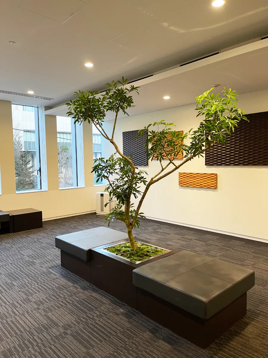 はじめ、フェイク植物をご検討されておりましたが、フェイクにはない植物のメリットをお伝えし、同コストでおもしろい樹形の植物を導入することに。