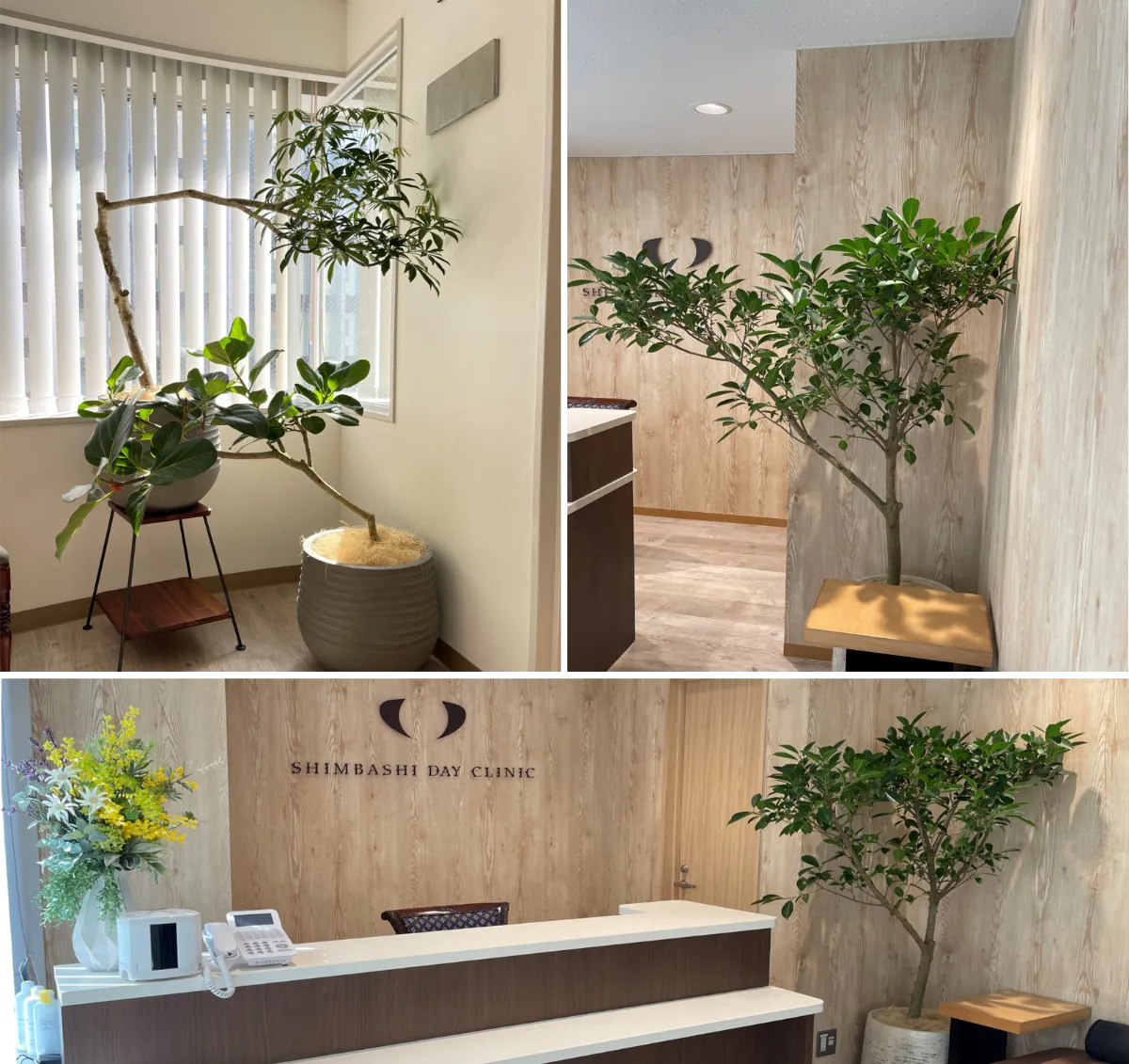 レンタルですと、木が枯れてしまう前に交換するなど短いサイクルでご利用いただけますので、外光が必要な生木でも安心してお使いいただけます。