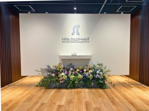 造花アレンジメントが華やかにエントランスを彩り明るい雰囲気を演出しています。