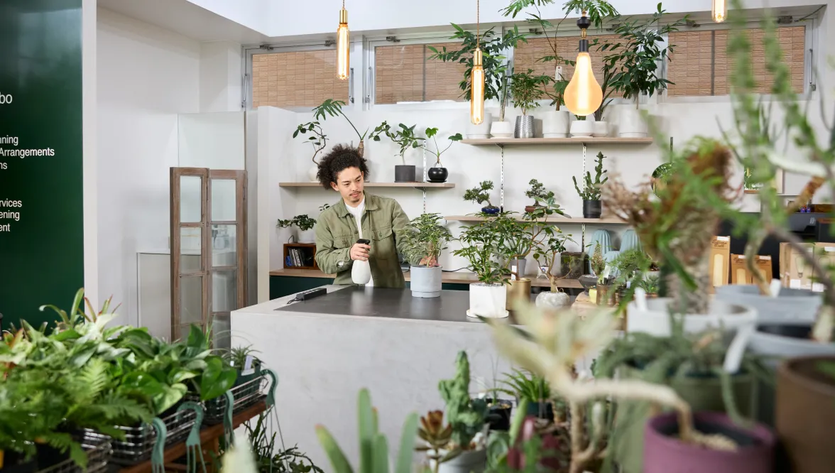 植物のある空間を体感しながら、経験豊富なコンサルタントが、オフィスや商業施設、ご自宅のテラスやお庭等、お客様のニーズに合わせ、幅広い植物のトータルサポートを提供します。