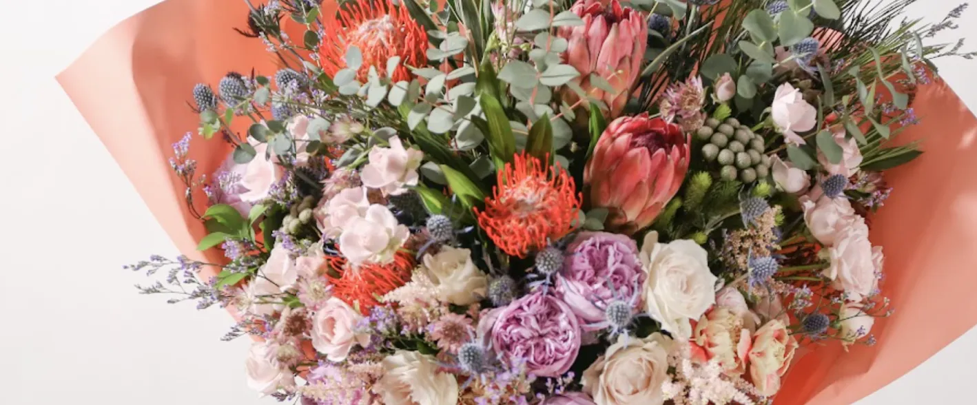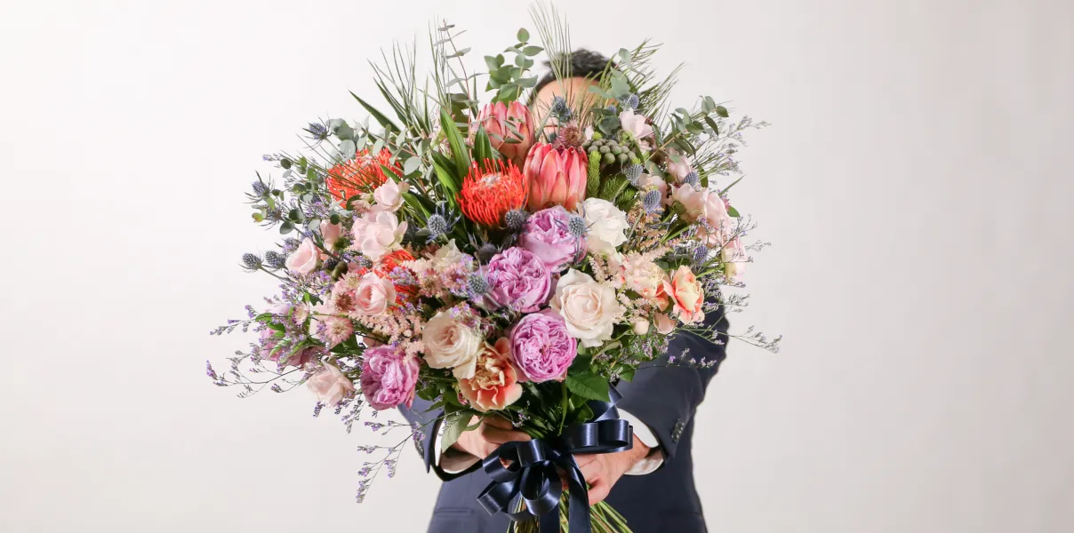 個性が光る花々をまとめたアレンジメント