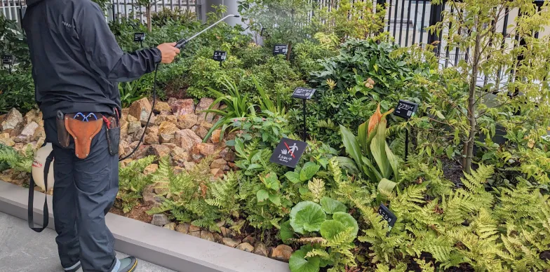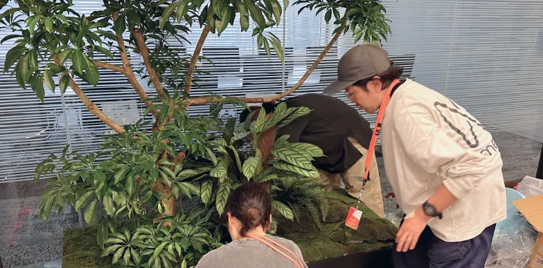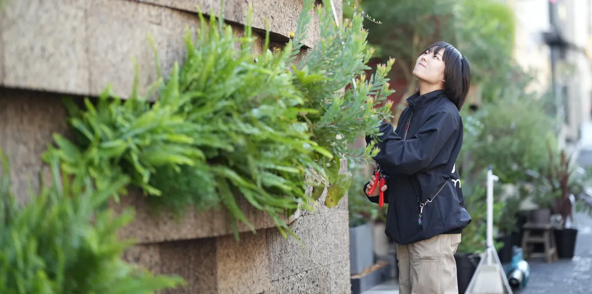 Exterior施工の上であらゆる技術・知識・安全対策を駆使した、総勢60名の選抜現場職人がお客様のご要望を120%叶えるサービスをご提供いたします。変化する植栽事情にも柔軟な思考で取り組み、安全面や事例の共有を行う動画研修プログラムや、アイディアを出し合う改善ミーティングを通して、多能工な職人教育を行っております。