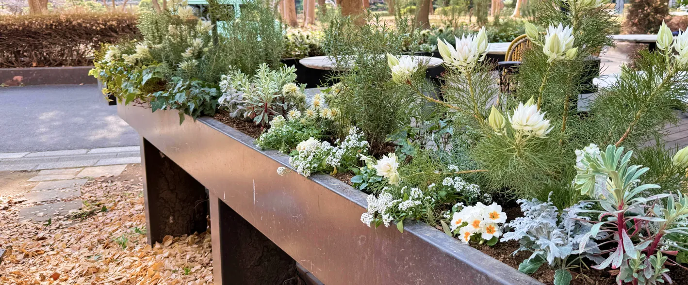 「奇麗な植栽帯には人はゴミを捨てない・跨がない」といった人間の心理を突いたり、「建物のファサード面を美化し、若者の利用者数を増やす」など機能面にも工夫を施し、レクリエーション機能やストーリー性のあるデザインを日々追及しております。