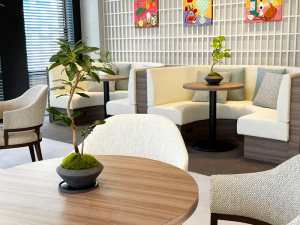 観葉盆栽で植物飾るアイコニックなオフィス空間