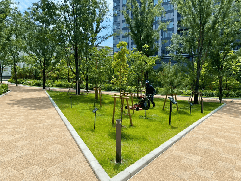 グリーンの映える屋上空間で社員同士が交流できる場所を提供