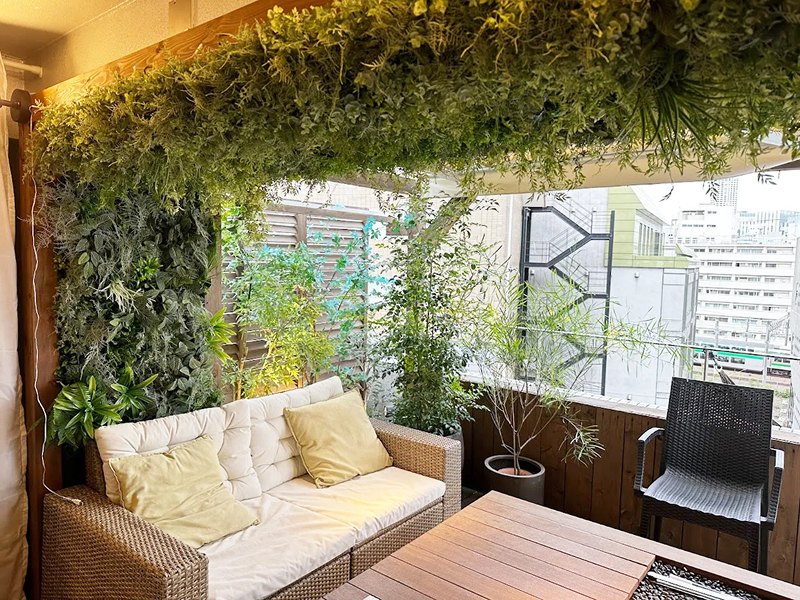 VapeMania 恵比寿店様のテラスをフェイクグリーンで装飾いたしました。