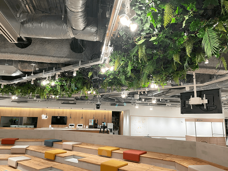 フェイクグリーンで創り出すジャングルライクな天井装飾
