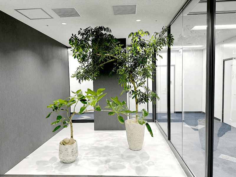 オブジェを飾るように、シルエットの美しい樹形の観葉植物を